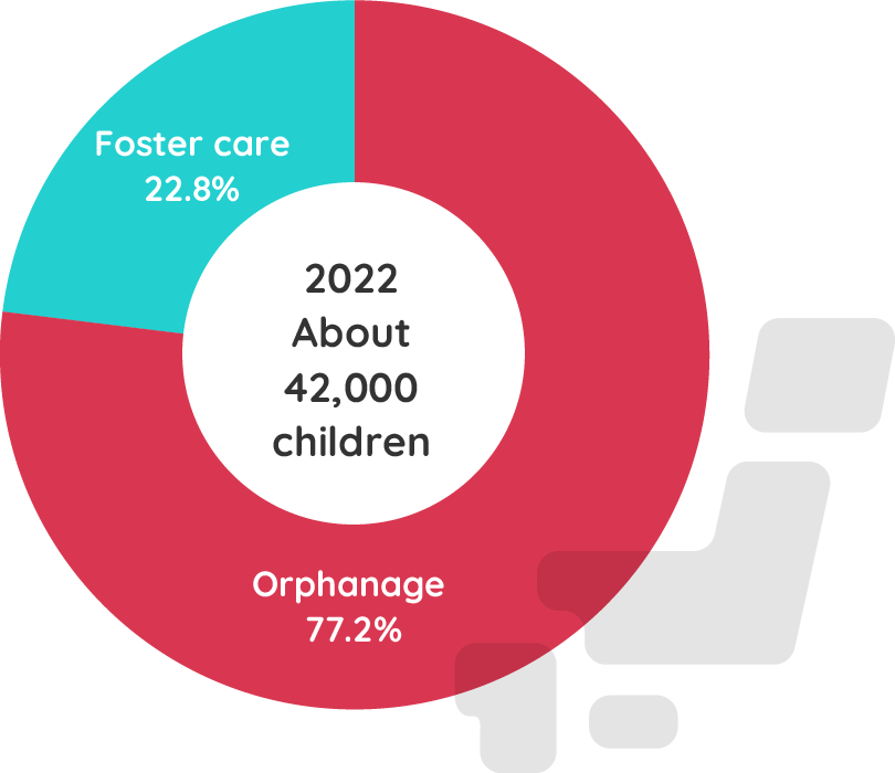 Approximately 36,000 children out of the 42,000 who are not able to live with their birth parents are living in orphanages.
